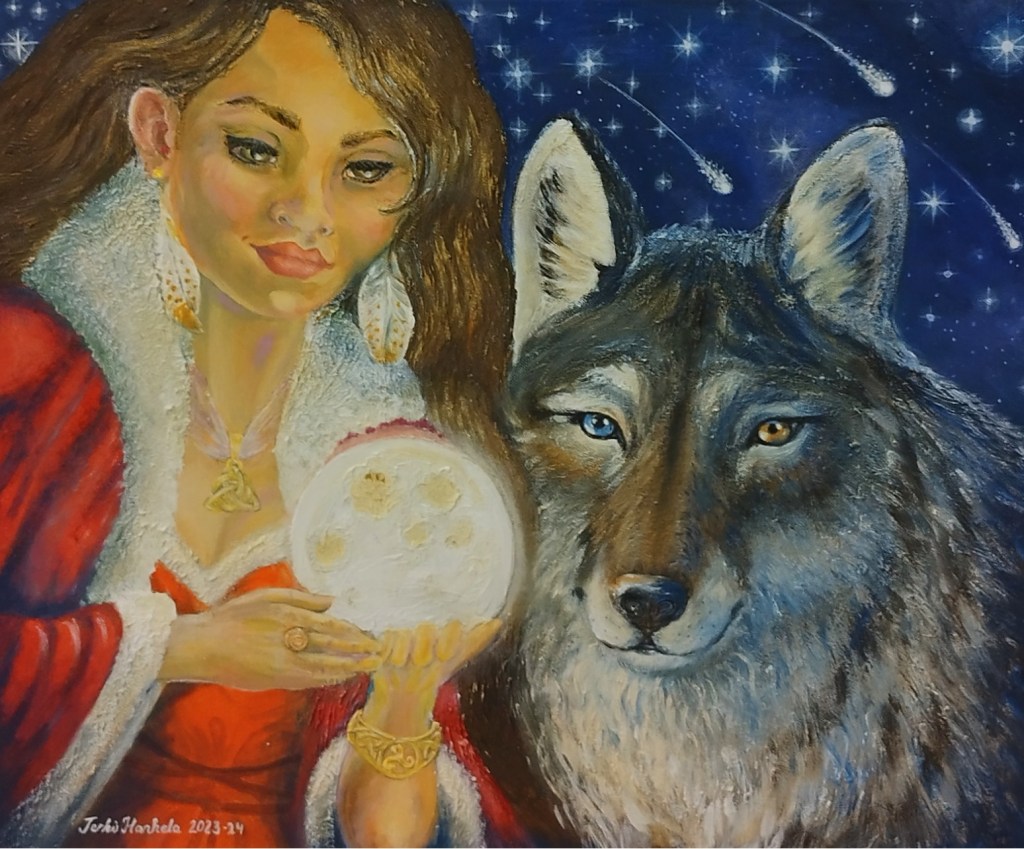 Vakavaan ritatulehdukseen sairastuminen ja siitä paranemismatkan alkaminen. Kuolemanpelko kosketti taulun aloitusaikaan. Suden voima auttaa hiljentymään ja löytämään elämän myysteereitä ja totuuden itsestään. Omantien kulkija ja opettaja.