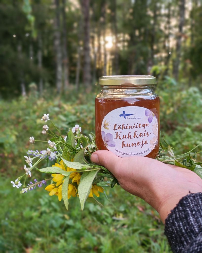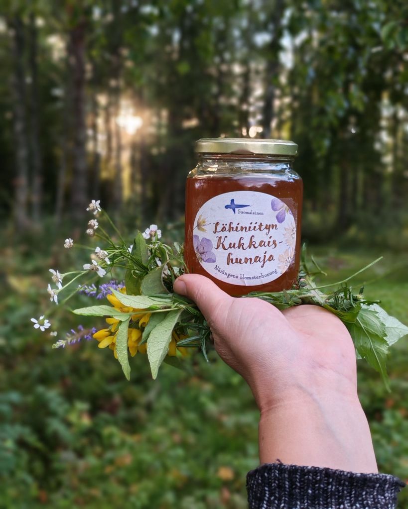 Ensimmäinen hunajasato on korjattu pesistä ja saatu nauttia herkullista makeaa lähiniittykukista mehiläisten tekemää hunajaa.