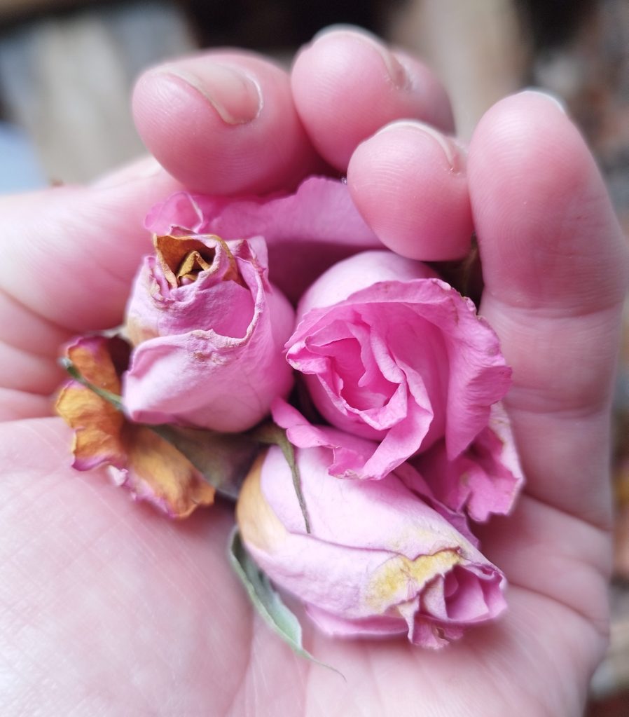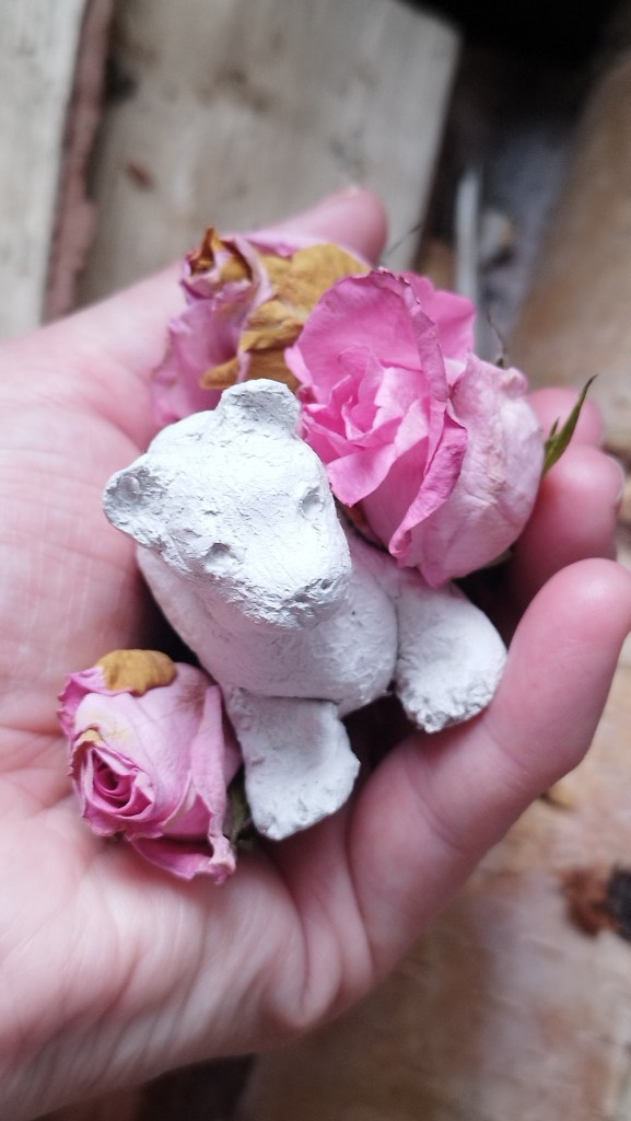 Yksi pieni tunnekarhu kuihtuneiden ruusun nuppujen keskellä: )
